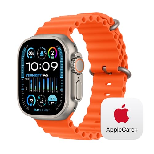 Apple Watch Ultra 2 [GPS + Cellular 49mm] Smartwatch with Rugged Titanium Case & Orange Ocean Band. Fitness Tracker, Precision GPS, Action Button, Bright Retina Display With AppleCare+ (2 Years)
