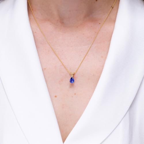 Angara December Birthstone – V-Bale Pear-Shaped Natural Tanzanite Solitaire Pendant Necklace In Silver (0.65 Cttw Tanzanite)