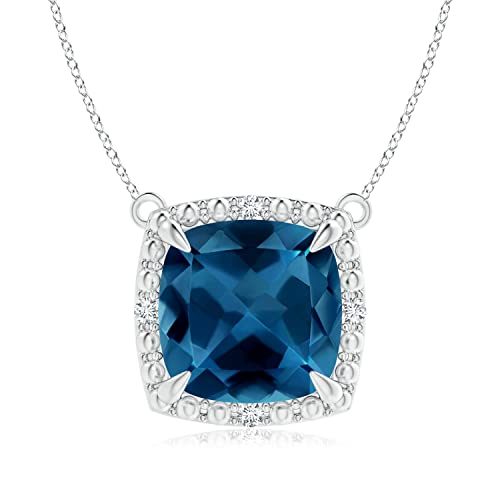 Angara Natural London Blue Topaz Solitaire Halo Pendant Necklace for Women in 14K Solid Gold | November Birthstone, Birthday, Engagement, Anniversary, Wedding Jewelry Gift for Women