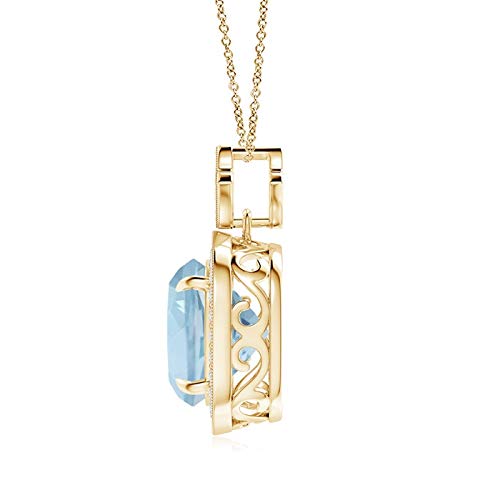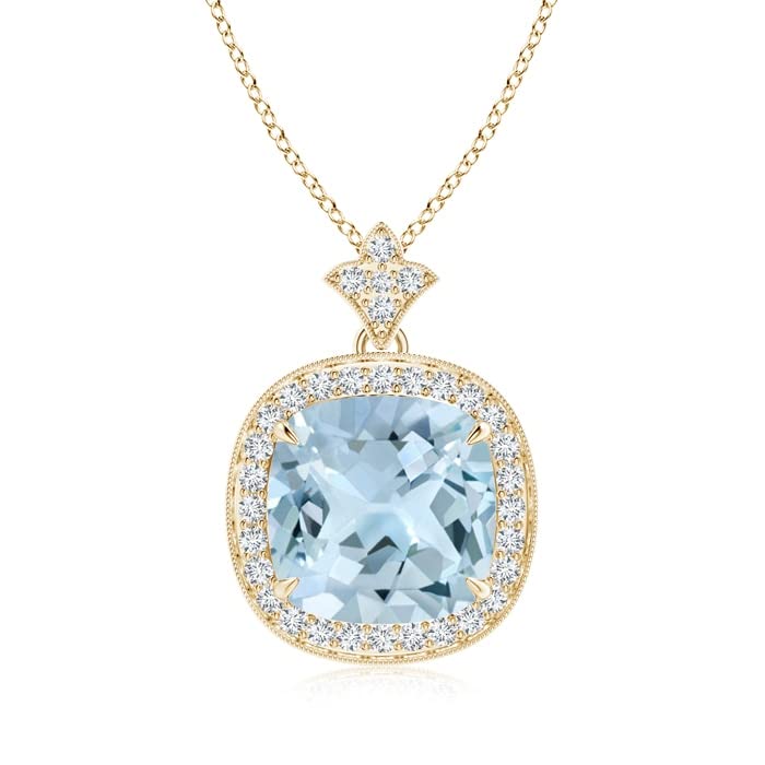 Angara Natural Vintage Inspired Cushion Aquamarine Halo Pendant in 14K Solid Gold/Platinum | March Birthstone, Birthday, Engagement, Anniversary, Wedding Jewelry Gift for Women