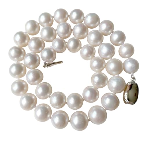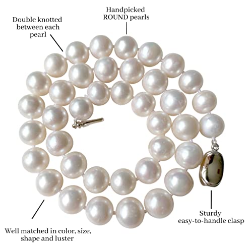 II ROUND PEARL II Real Pearl Necklace for Women Ivory Beige Cream White Pearls Jewelry Men Cultured Freshwater Sterling Silver Wedding