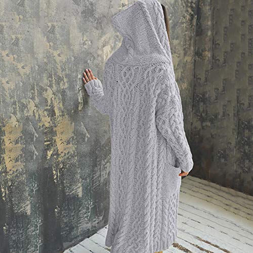Women Coat Single Cardigan Sweater Pocket Hood Large Size Breasted Sleeves Long Women’s Coat Women Cardigan