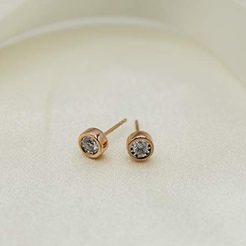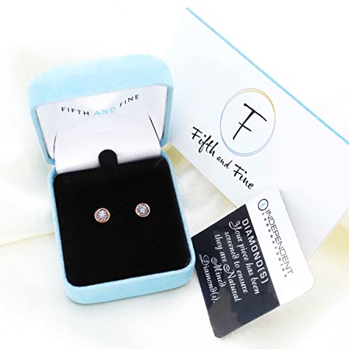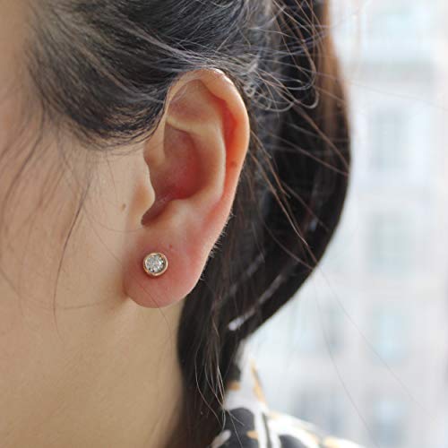 Women Round Diamond Stud Earrings Set In 925 Sterling Silver | Natural or Lab Grown | 14K Gold Bezel | White Yellow or Rose | Independent Lab Certified | Hypoallergenic