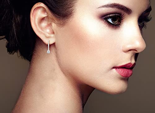 1/2 to 1 Carat Diamond Round Halo Dangle Earrings for Women in 14k White Gold (H-I, SI2-I1, cttw) Leverback by Privosa Fine Jewelry