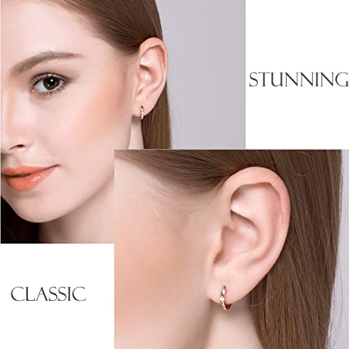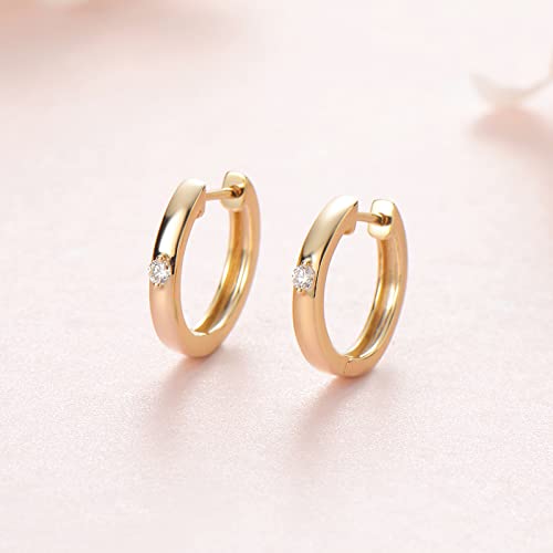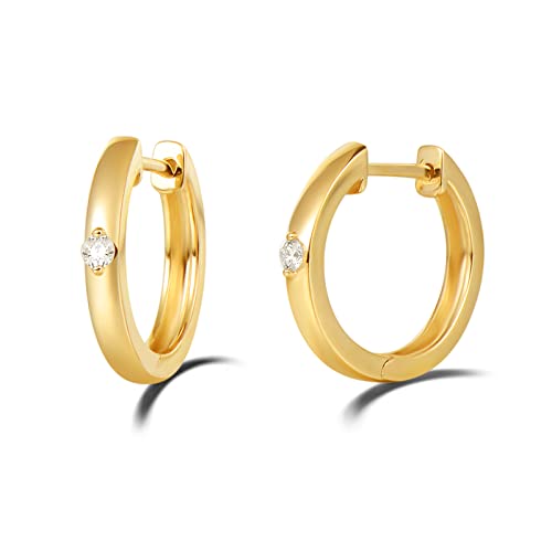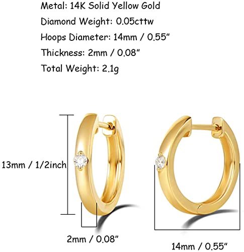 Carleen Solid 14K White/Yellow Gold 0.10cttw Solitaire Diamond Tiny Small Gold Huggie Hoop Earrings Fine Jewelry For Women, 14mm