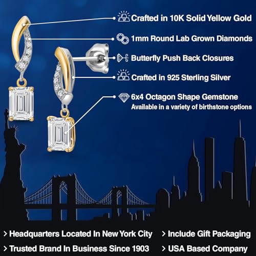 Be the first to review “Gem Stone King 925 Silver and 10K Yellow Gold 6X4MM Emerald Cut Gemstone Birthstone and White Lab Grown Diamond Dangle Earrings for Women”