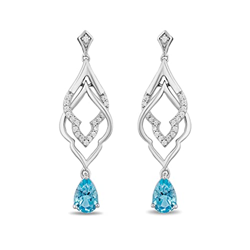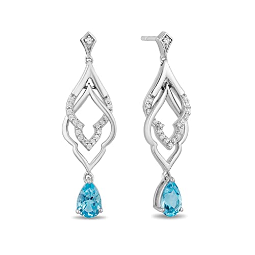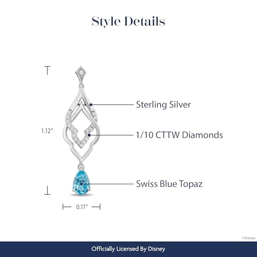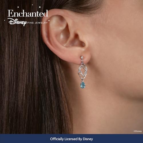 Jewelili Enchanted Disney Fine Jewelry Sterling Silver 1/10 CTTW Diamond and Swiss Blue Topaz Jasmine Earrings
