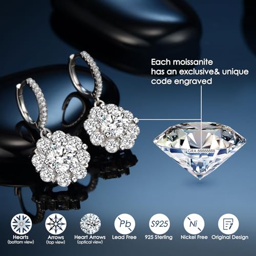 Moissanite Earrings for Women Hoop Earrings 1Ct-3Ct Anniversary Jewelry Present for Wife, Birthday Valentines Gifts,Gifts for Wife Soulmate Mom Girlfriend