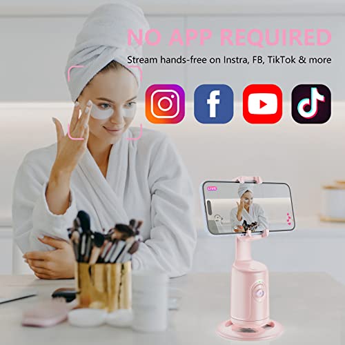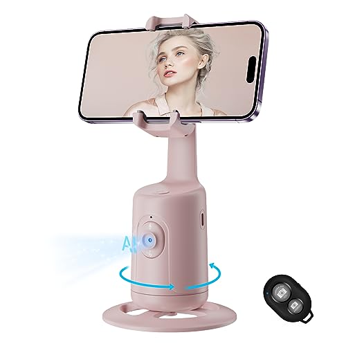 Auto Face Tracking Tripod, No App, 360° Rotation Face Body Phone Camera Mount Gesture Control, Smart Shooting Holder with 3000mAh Rechargeable Battery for Vlog, Streaming, Tiktok Trend Items (Pink)