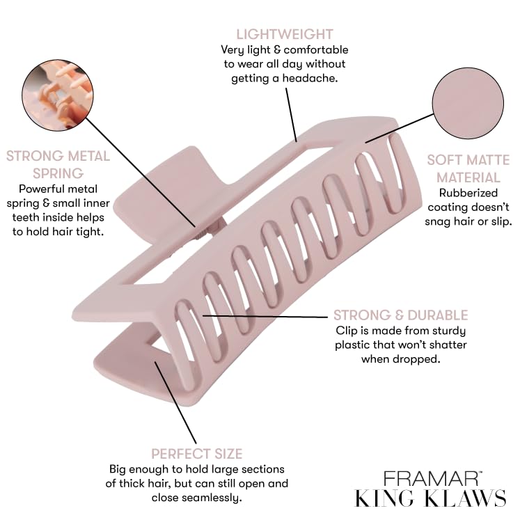 FRAMAR Large Claw Clips For Thick Hair – Large Hair Clip For Thick Hair, Girls Hair Clips Claw, Big Hair Clips For Thin Hair, Hair Claws Clips For Hair, Matte Claw Clips, Pink Hair Clips 4 Pack